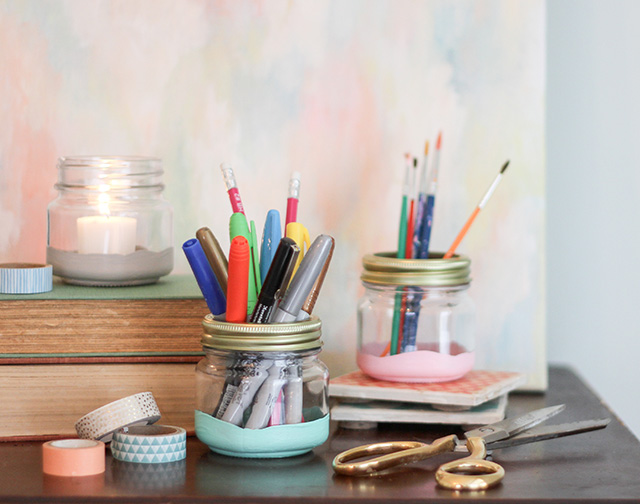 The mason jar trend has been super popular over the last few years, and I’m still digging the simple mini mason style jars. I love using them as organizers and storage containers.