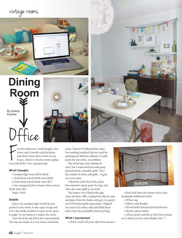My $100 DIY Home Office Update was featured in the latest issue of Vintage KC Magazine. How cool is that? 🙂