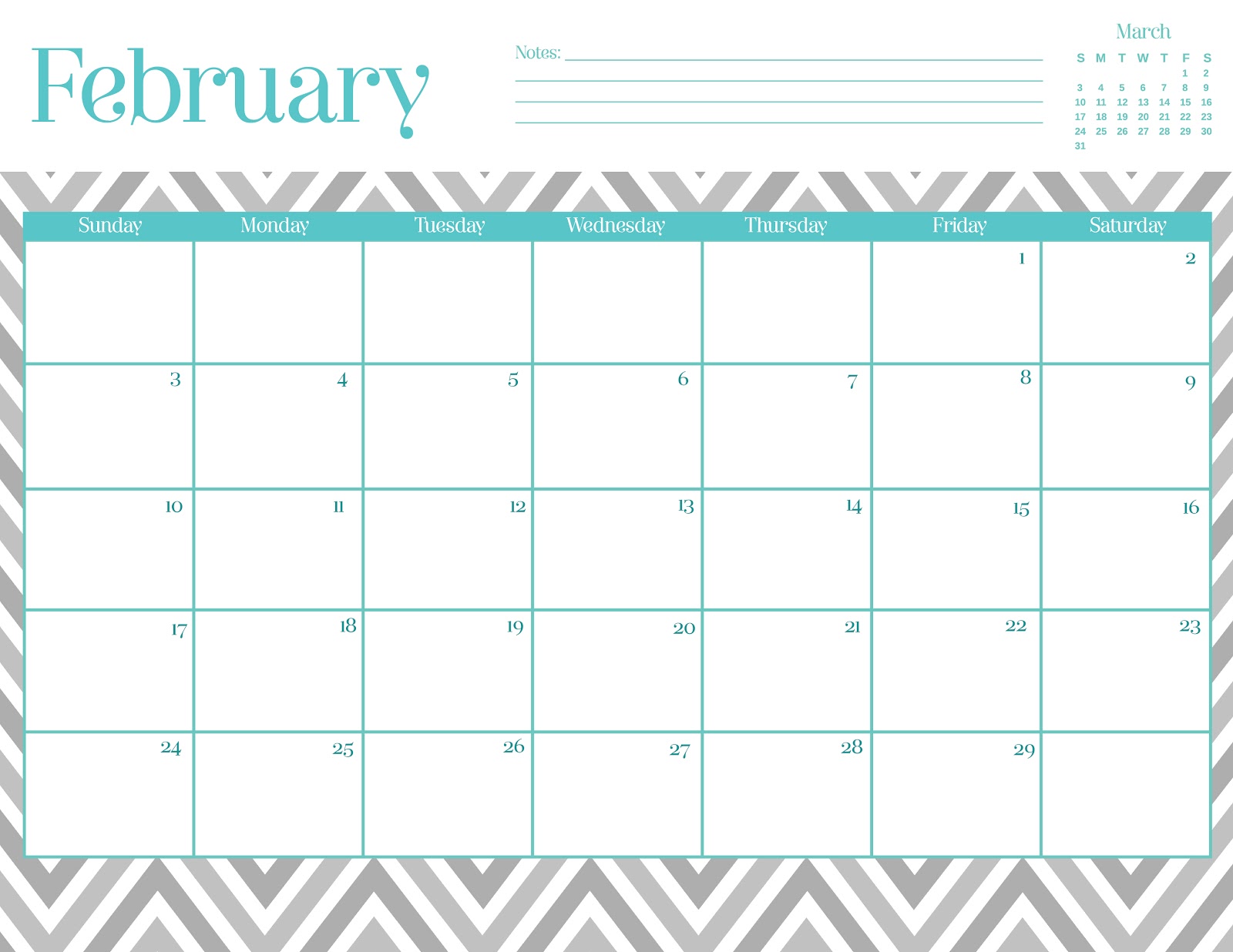 I designed a complete chevron calendar for all of you chevron lovers out there.