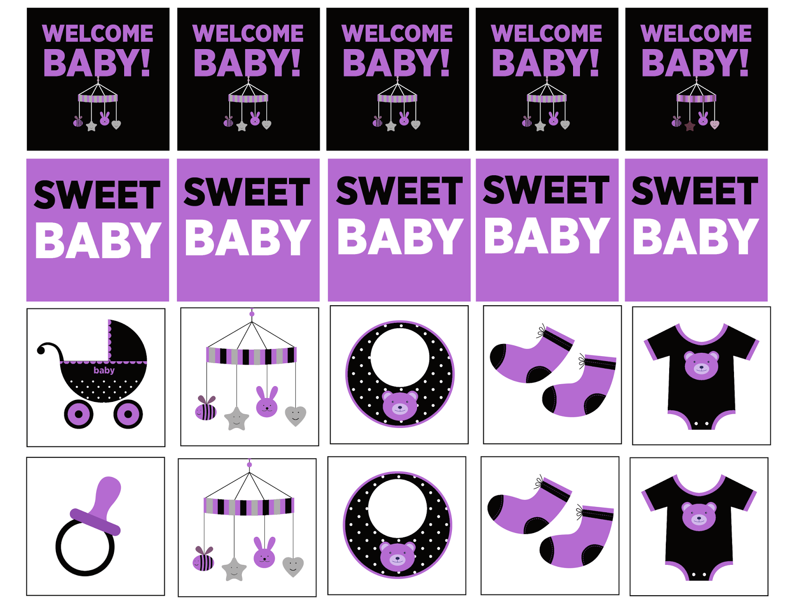 I’m back with more baby shower printables as promised – a “SWEET BABY” banner and cupcake toppers! All available in 4 different colors.