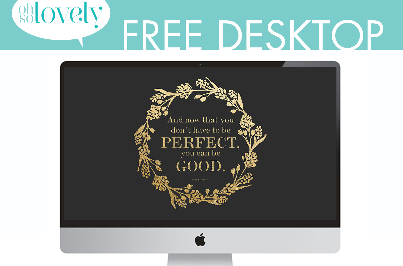 My friend Renee (the one who did the awesome NYE cocktail post last week), requested a desktop. She used my free “get shit done” desktop all of last semester, and this semester she wanted to go with a new one “And now that you don’t have to be perfect, you can be good.” – John Steinbeck