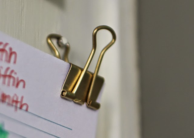 PPS. If you want a cute and easy way to hang your printable calendar pages, take two smaller binder clips and spray paint them gold (or any color you want) and hang them on the wall. They work perfectly and add another element of cute to your command center.