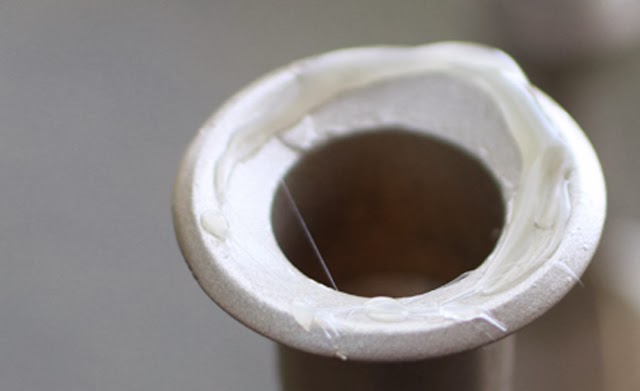 After the paint dried, I removed the tape and paper which exposed a clean line. All I had left to do was epoxy glue the glass vase to the candle stick.