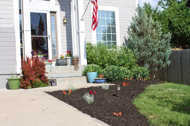 I wish I had a before photo of the flower bed/landscaping on the front of our house, but it was so bad I must have been too embarrassed to document it, ha. We have been ignoring it because Ted is planning a landscaping overhaul with terraced pavers. The weeds were almost up to my knees. So bad.